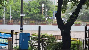 • 집중호우로 인해 우이천에 물 수위가 급격하게 오르고 있다