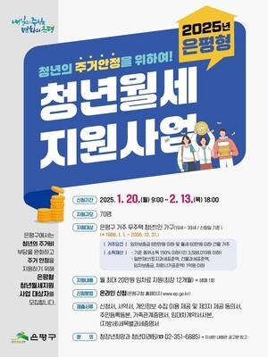 • 은평구, 무주택 1인 가구 청년에 월세 최대 240만 원 지원