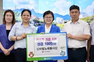 신바람노래봉사단(회장 박성규)이 최근 개최한 ‘사랑나눔 일일찻집’ 수익금 일부를 지난 7월 29일(화) 오후 2시, 강북구청 구청장실에서 강북구 내 저소득층 한부모 가정을 위해 성금 전달식을 가졌다.이날 성금 전달식에는 신바람노래봉사단 박성규 회장 외 임원들과 강북구청장이 함께 자리했으며, 따뜻한 손길이 필요한 이웃들에게 실질적인 도움이 될 수 있도록 성금으로 쓰일 예정이다.박성규 신바람노래봉사단 회장은 “회원들이 정성껏 준비한 일일찻집 수익금이 비록 많지는 않지만, 저소득층을 위해 강북구청에 전달하게 되어 매우 기쁘다”라며 “앞으