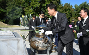 오세훈 서울시장은 26일(토) 오전11시 국립서울현충원(동작구현충로210)에서 열린 ‘박정희대통령 서거 제45주기 추도식’에 참석해 헌화했다.1980년부터 매년 개최되어 온 ‘박정희 대통령 추도식’은 이날 정재호 추도위원장이자 전국회의원 등 3백 여명이 참석한 가운데 1시간 동안 진행됐다.오시장은 헌화를 마친 뒤 묘역입구에 마련된 방명록에 ‘국가 번영의 유지를 받들어 더밝은 미래를 만들어 가겠습니다’라고 추도 글을 남겼다.