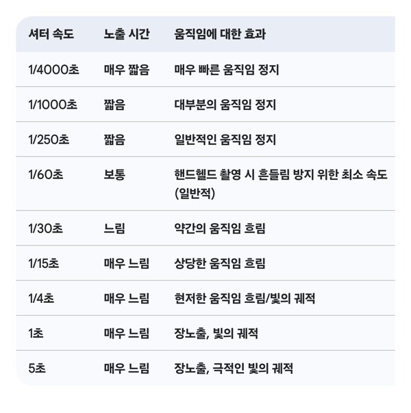 2. 셔터 속도: 빛 노출의 지속 시간
