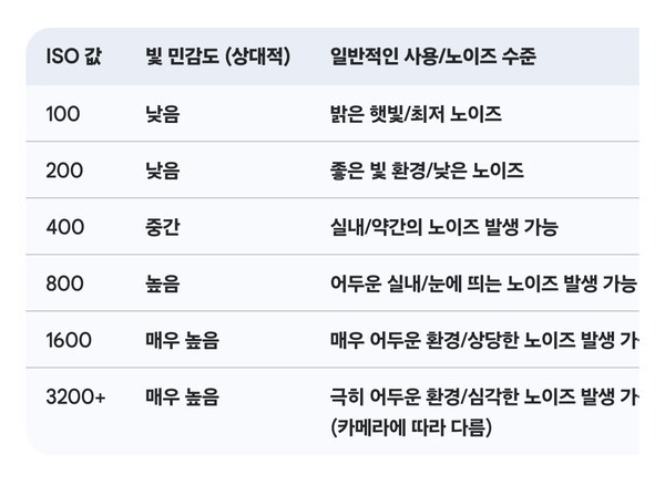 3. ISO: 빛에 대한 민감도 향상